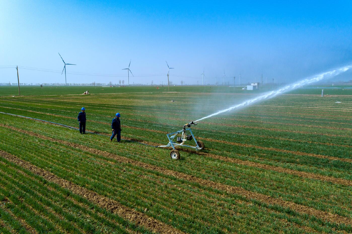 春撫萬物,水潤“糧倉”。在“豫北糧倉”滑縣麥田里,噴灌機正在努力工作,源源不斷地將清水撒向青翠的麥苗,陽光照射下水霧七彩斑斕,一副中原糧倉春灌生產(chǎn)的絕美畫卷。在這幅畫卷中,電力工作人員正在開展春灌保供電服務(wù)。