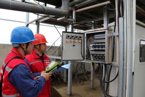 國網(wǎng)蠡縣供電公司工作人員對養(yǎng)殖場內(nèi)糞污無害化處理設(shè)備進行測溫檢查 龐亞杰 攝
