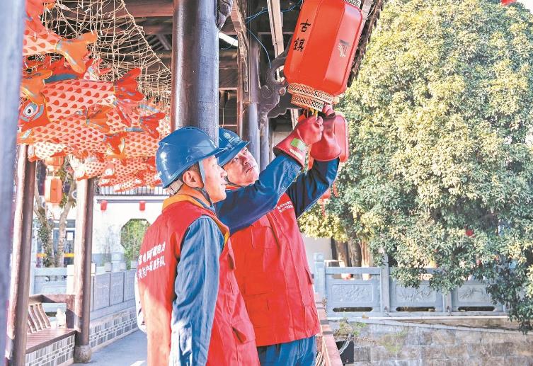 1月21日,黨員服務(wù)隊隊員在肥西縣三河古鎮(zhèn)排查用電設(shè)備隱患。劉玲 攝