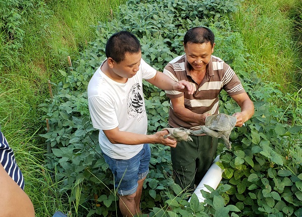 谷崗鄉(xiāng)登仙橋村早禾嵊組貧困戶歐陽高平在樂安縣公司的幫扶下養(yǎng)殖甲魚