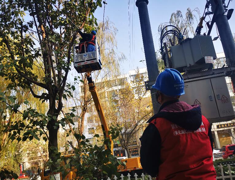 中國電力網(wǎng)訊 11月18日,在循化縣城10千伏團五路主干90號桿附近,國網(wǎng)青海電力三江源(黃化循化)共產(chǎn)黨員服務(wù)隊正忙著修剪樹枝、清理枝條、疏散行人等工作。據(jù)悉,這是公司開展秋障清理工作的一個縮影。