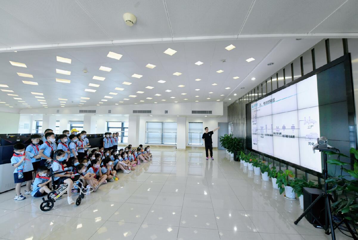 中國電力網(wǎng)訊 “家庭用電一般是220伏,但是我們管理的電卻有1萬伏、35萬伏、110萬伏……”。7月10日,在國網(wǎng)余姚市供電公司的電力調(diào)度控制分中心的大廳里,工作人員正在為40名小學生講解供電公司的工作內(nèi)容,新奇的知識和有趣的講解引起了同學們的陣陣掌聲。