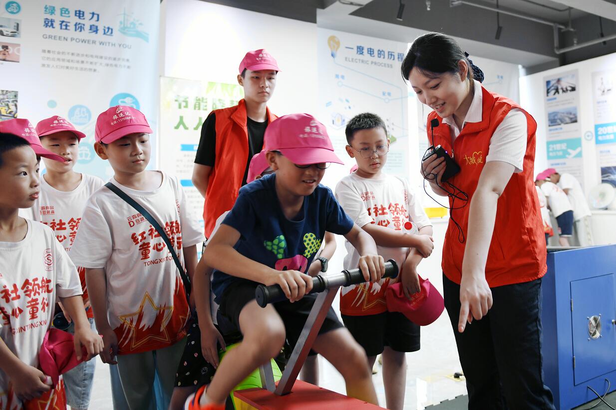 中國電力網(wǎng)訊 “今天我學到了很多安全用電知識,知道了電的來之不易……”7月14日,在國網(wǎng)余姚市供電所公司新時代文明實踐基地內(nèi),大城小愛志愿者丁張瀅正給30余名學生講解一度電的故事,帶領他們在學習探索中感受節(jié)約用電的重要性。