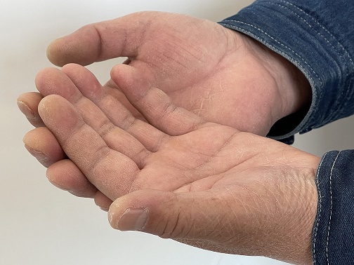 記不清在多少個凜冬和雪天進行線路應(yīng)急搶修工作,特別是長時間在桿塔上作業(yè),讓張旭棟患上了頸椎病和腰腿關(guān)節(jié)炎。此外,張旭棟也沒有過多地“注意保護他的雙手”。在戶外溫度接近零下30攝氏度的冬季工作,線手套、絕緣手套根本無法抵御得了嚴寒。但張旭棟好像是有著使不完的勁兒,即便雙手被凍得顫抖發(fā)麻,他也沒停下,只想著能盡快完成搶修,恢復(fù)送電。有時在給設(shè)備部件的螺栓進行預(yù)緊時,不免磕碰在架構(gòu)尖銳的棱角上,工作結(jié)束后摘下手套,張旭棟的手通常是青一塊紫一塊,甚至隔著線手套被劃傷流血后都已結(jié)痂……