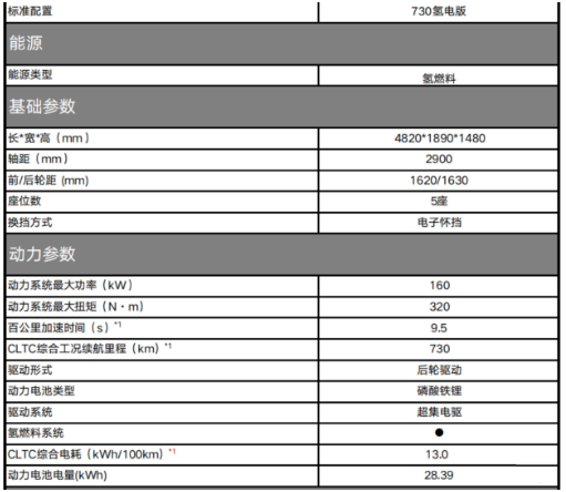 氫電版續(xù)航里程這里也標注的很清楚,它是一款續(xù)航能達到730km的氫能源電動車,車身尺寸和純電及增程版本保持不變。同樣也采用了后驅布局,并且匹配和增程式車型一樣的28.39kWh動力電池,換句話說就是氫燃料版車型將增程式車型用于發(fā)電的發(fā)動機替換為用于發(fā)電的氫燃料。而氫燃料相比發(fā)動機而言最大的優(yōu)勢則在于排放更環(huán)保、噪音控制更好,以及未來的使用成本上。