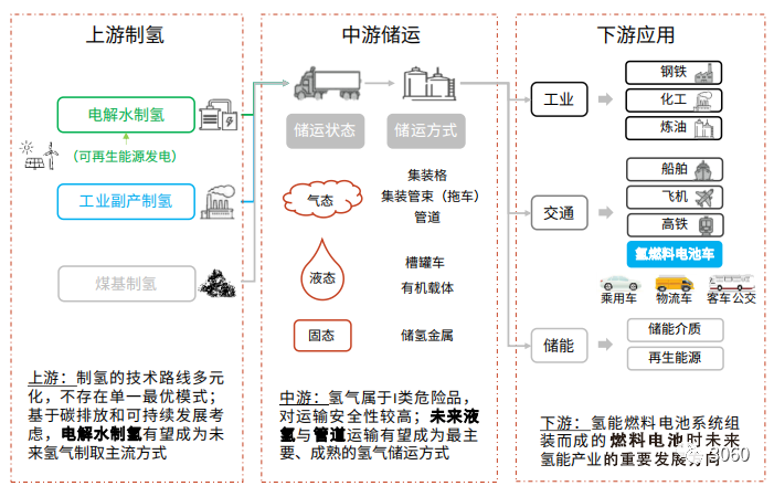 氫能產(chǎn)業(yè)鏈主要由上游制氫—中游儲運—下游應用組成。