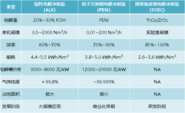 目前,綠氫的主要生產方式為電解水制氫,三種常見的電解水方式如下: