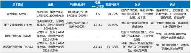 理想情況下,按照電耗4kwh/標方,電價0.15元/kwh,對應成本為15元/kg,則基本可與天然氣制氫平價;若綠氫與風光、風電耦合,年利用小時提高至4000小時以上,則成本有望進一步下降至11元/kg以內(nèi),則基本可以實現(xiàn)與煤制氫平價。
