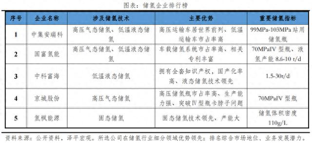 儲氫排行主要看氫儲運企業(yè)是否掌握核心技術路線、核心材料。