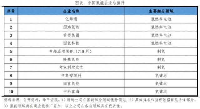 本榜單主要列舉在氫能產(chǎn)業(yè)鏈各領域具備核心競爭力的代表性企業(yè),這些企業(yè)為我國氫能產(chǎn)業(yè)從實驗室走向產(chǎn)業(yè)化作出了巨大貢獻,未來潛力巨大:億華通、國鴻氫能、重塑集團、國氫科技、中船派瑞氫能(718所)、隆基氫能、考克利爾競立、中集安瑞科、國富氫能、中科富海等企業(yè)排名前列。