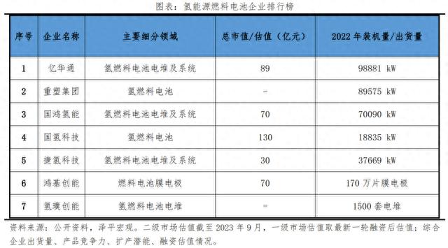 國鴻氫能,氫燃料電池產(chǎn)品和系統(tǒng)解決方案龍頭,2022年燃料電池系統(tǒng)新增獨角獸。估值70億元,嘗試港股IPO,有望成為繼億華通之后第二家在香港上市的氫燃料電池企業(yè)。市場表現(xiàn)看,公司的燃料電池技術已廣泛應用于交通、分布式發(fā)電等領域的商業(yè)化落地,子公司鴻力氫動2022年燃料電池系統(tǒng)裝機量超過6萬千瓦,市占率15%,排名第三。產(chǎn)品優(yōu)勢看,公司已實現(xiàn)核心原材料與生產(chǎn)裝備的國產(chǎn)化及生產(chǎn)制造的高質(zhì)量規(guī)?;瑲淙剂想姵仉姸焉a(chǎn)設施全球領先。