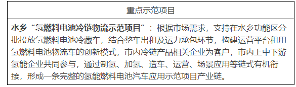 2.有序推進(jìn)燃料電池汽車示范應(yīng)用。以水鄉(xiāng)“氫燃料電池冷鏈物流示范項(xiàng)目”為推廣試點(diǎn),支持市屬國(guó)有企業(yè)牽頭推動(dòng)項(xiàng)目落地。以冷鏈物流車、環(huán)衛(wèi)車、重型牽引車等商用車應(yīng)用為突破點(diǎn)和切入點(diǎn),推進(jìn)燃料電池汽車在港口、物流園區(qū)、重點(diǎn)產(chǎn)業(yè)園區(qū)等區(qū)域和長(zhǎng)途貨運(yùn)、城市配送、市政環(huán)衛(wèi)、城市建設(shè)等領(lǐng)域示范應(yīng)用,打造大灣區(qū)氫能物流中心和綠色示范港口。