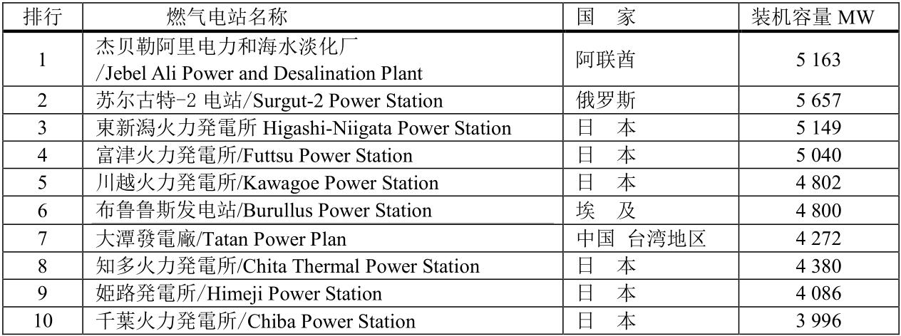 全球十大天然氣電站