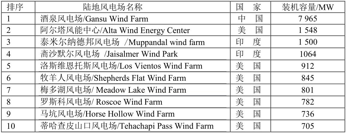 全球十大陸地風電場