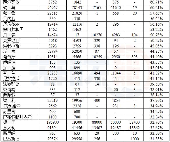 表2 wiki:世界各國再生能源發(fā)電 (單位:GWh)