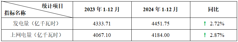 2)防城港核電廠4號機(jī)組2024年2月28日裝料,本表格中統(tǒng)計(jì)發(fā)電量及上網(wǎng)電量包括調(diào)試期間電量。