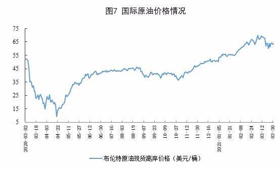 原油進(jìn)口大幅增長(zhǎng),國(guó)際原油價(jià)格基本穩(wěn)定。3月份,進(jìn)口原油4966萬噸,同比增長(zhǎng)20.8%;一季度,進(jìn)口原油13923萬噸,同比增長(zhǎng)9.5%。3月31日布倫特原油現(xiàn)貨離岸價(jià)格為63.52美元/桶,比3月1日的64.56美元/桶下跌1.6%。