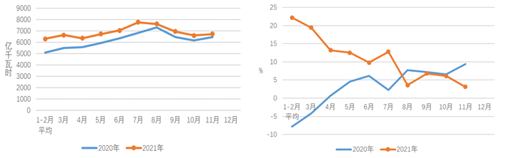 1-11月,全國全社會(huì)用電量74972億千瓦時(shí),同比增長11.4%,其中,11月份全國全社會(huì)用電量6718億千瓦時(shí),同比增長3.1%。