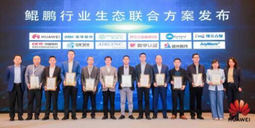 在活動現(xiàn)場,華為與多家合作伙伴共同發(fā)布了鯤鵬行業(yè)生態(tài)聯(lián)合方案,并授予合作伙伴技術(shù)認(rèn)證證書。