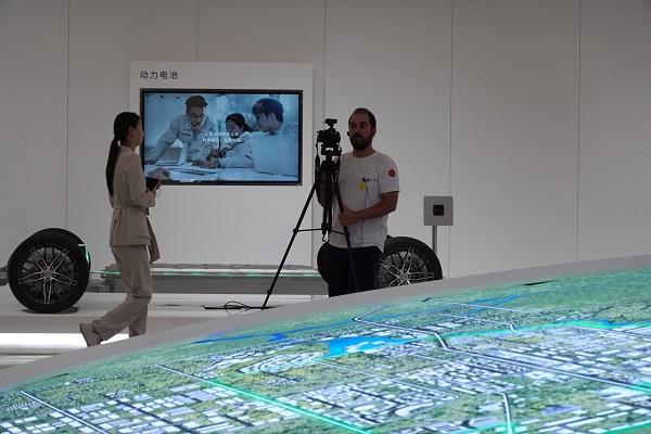 巴西勞動(dòng)者電視臺(tái)(TVT)記者M(jìn)auro Ram Ramos Pintos在拍攝園區(qū)規(guī)劃圖。中國日?qǐng)?bào)網(wǎng)記者 齊磊 攝