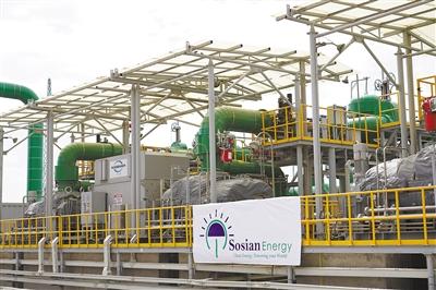 由中國(guó)企業(yè)承建的肯尼亞索西安地?zé)犭娬居谌ツ?月底投產(chǎn)送電,成為非洲首個(gè)從設(shè)計(jì)、產(chǎn)品生產(chǎn)到建設(shè)、調(diào)試完全由中國(guó)企業(yè)獨(dú)立完成的地?zé)岚l(fā)電站。該電站設(shè)計(jì)裝機(jī)容量35兆瓦,每年可減少二氧化碳排放24萬噸。圖為索西安地?zé)犭娬?號(hào)發(fā)電機(jī)組。本報(bào)記者 黃煒鑫攝