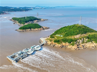 8月23日,浙江省舟山市岱山縣秀山島海域,全球最大兆瓦級(jí)潮流能發(fā)電機(jī)組LHD1600“奮進(jìn)號(hào)”正在平穩(wěn)運(yùn)行,源源不斷地將來自大海的清潔能源通過國家電網(wǎng)輸送到千家萬戶。