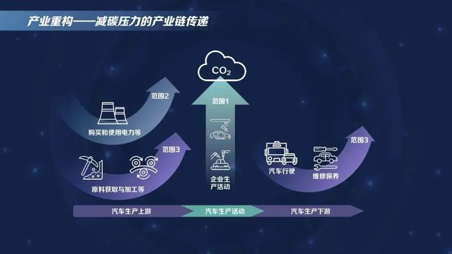 另外,產(chǎn)業(yè)重構(gòu)方面,減碳壓力的產(chǎn)業(yè)鏈傳遞也很突出。現(xiàn)在越來越多的全球性大公司自主承諾減排,原來對一家企業(yè)到底排多少碳主要看它的生產(chǎn)過程,但現(xiàn)在已經(jīng)擴(kuò)大到產(chǎn)業(yè)鏈。一個產(chǎn)業(yè)鏈包括上游的原料和下游產(chǎn)品的應(yīng)用,把上下游綜合考慮起來,就會形成減碳壓力的產(chǎn)業(yè)鏈傳遞。比如,中國現(xiàn)在是世界上最大的小汽車生產(chǎn)和消費市場,每年產(chǎn)銷2500—3000萬輛,這個量是美國和日本加起來的總和,這么大的量,對鋼材會有比較大的需求。一家承諾了整個產(chǎn)業(yè)鏈上要減碳的跨國公司在生產(chǎn)小汽車時,就會要求上游生產(chǎn)鋼材的廠家也要跟著它減碳,這樣會形成倒逼,煉鋼廠如果達(dá)不到它的要求,它就會去找其他能達(dá)到要求的供應(yīng)商,所以在自主減排的目標(biāo)實現(xiàn)里會形成新的壓力傳遞,這是未來產(chǎn)業(yè)重構(gòu)里非常重要的驅(qū)動因素。