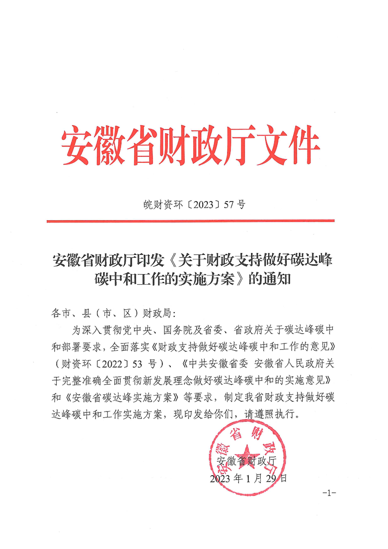 近日,安徽省財(cái)政廳印發(fā)《關(guān)于財(cái)政支持做好碳達(dá)峰碳中和工作的實(shí)施方案》的通知。