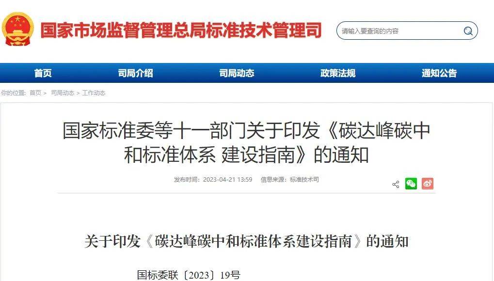 《碳達峰碳中和標準體系建設(shè)指南》已經(jīng)2023年2月6日國務(wù)院標準化協(xié)調(diào)推進部際聯(lián)席會議全體會議通過,現(xiàn)印發(fā)給你們,請結(jié)合實際認真貫徹落實。