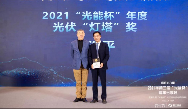 1月6日,備受矚目的2021年“光能杯”評(píng)選活動(dòng)在蘇州盛大開(kāi)啟,中環(huán)股份副董事長(zhǎng)兼總經(jīng)理沈浩平先生被授予2021年度“光能杯”光伏“燈塔獎(jiǎng)”,國(guó)家應(yīng)對(duì)氣候變化戰(zhàn)略研究和國(guó)際合作中心首任主任李俊峰先生為其現(xiàn)場(chǎng)頒獎(jiǎng)。