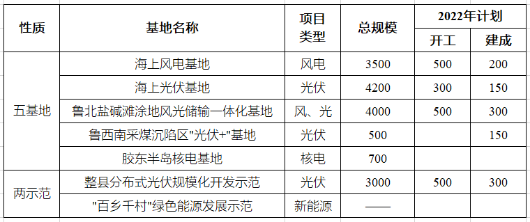 在此之前,3月3日,山東省能源局印發(fā)《2022年全省能源工作指導(dǎo)意見的通知》中,提出了“五基地二示范”工程,并規(guī)劃了35GW“海上風(fēng)電基地”、42GW“海上光伏基地”。