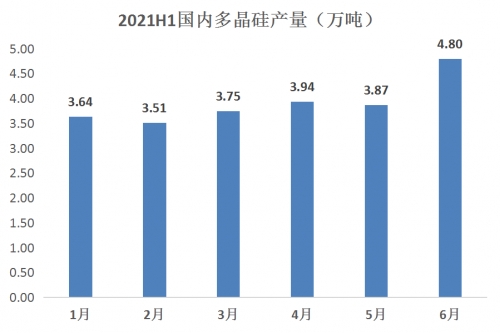 從硅業(yè)分會2021年上半年預計的硅片產(chǎn)量來看,硅料需求量合計約29.8萬噸,而國內(nèi)供給量約為28.1萬噸,供給與需求大致處于緊平衡狀態(tài)。硅片產(chǎn)能的超前超量釋放導致硅料總體需求激增,硅料企業(yè)上半年基本都是滿產(chǎn)運營狀態(tài),部分硅料企業(yè)個別月份綜合開工率更是高達111%。
