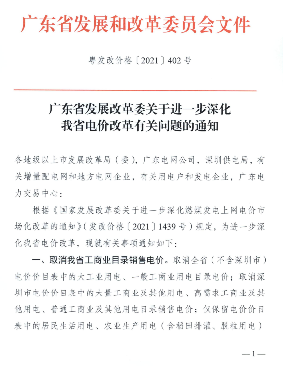 廣東省發(fā)改委:廣東工商業(yè)用電全部進(jìn)入市場