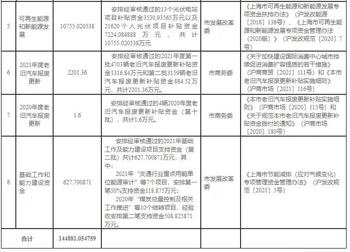 8、按照《上海市節(jié)能減排(應(yīng)對(duì)氣候變化)專項(xiàng)管理資金管理辦法(滬發(fā)改規(guī)范〔2021〕5號(hào))》等規(guī)定,安排經(jīng)審核通過的2021年基礎(chǔ)工作及能力建設(shè)項(xiàng)目支持資金(第二批)共計(jì)627.700871萬元,其中:
