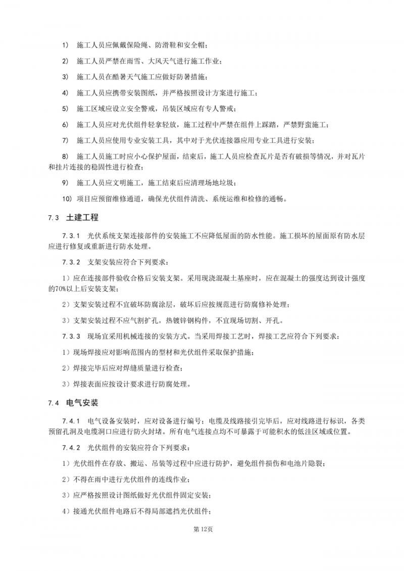 分布式光伏設(shè)計(jì)、安裝和運(yùn)維企業(yè)應(yīng)配備光伏發(fā)電領(lǐng)域的專職技術(shù)人員,應(yīng)具備與服務(wù)內(nèi)容相匹配的技術(shù)能力,鼓勵(lì)從業(yè)人員積極提升專業(yè)能力,主動(dòng)參加由行業(yè)組織或?qū)I(yè)機(jī)構(gòu)組織開(kāi)展的針對(duì)性系列技術(shù)培訓(xùn)并取得培訓(xùn)合格證書(shū)。