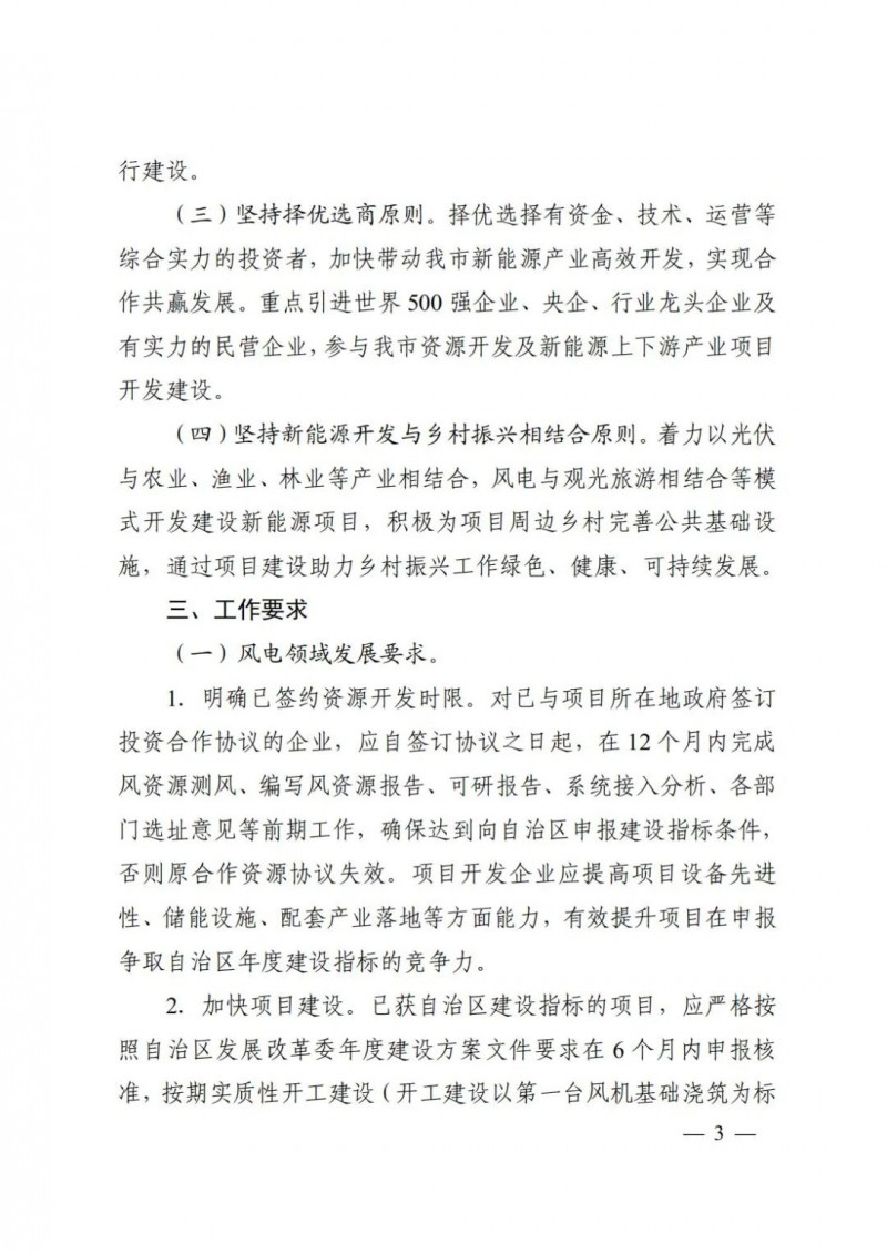 對(duì)已獲自治區(qū)建設(shè)指標(biāo)的項(xiàng)目,應(yīng)嚴(yán)格按照自治區(qū)發(fā)展改革委年度建設(shè)方案文件要求按期實(shí)質(zhì)性開工建設(shè)、完工和實(shí)現(xiàn)并網(wǎng)發(fā)電,否則取消項(xiàng)目建設(shè)權(quán)限。