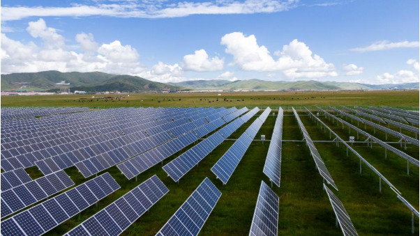 位于青海省海南藏族自治州共和縣塔拉灘的千萬(wàn)千瓦級(jí)生態(tài)光伏發(fā)電基地,新割過(guò)的草地平展如毯,整齊的光伏矩陣間,工人們手持水管,給光伏板洗塵。遠(yuǎn)處,羊群穿梭,自由覓食。