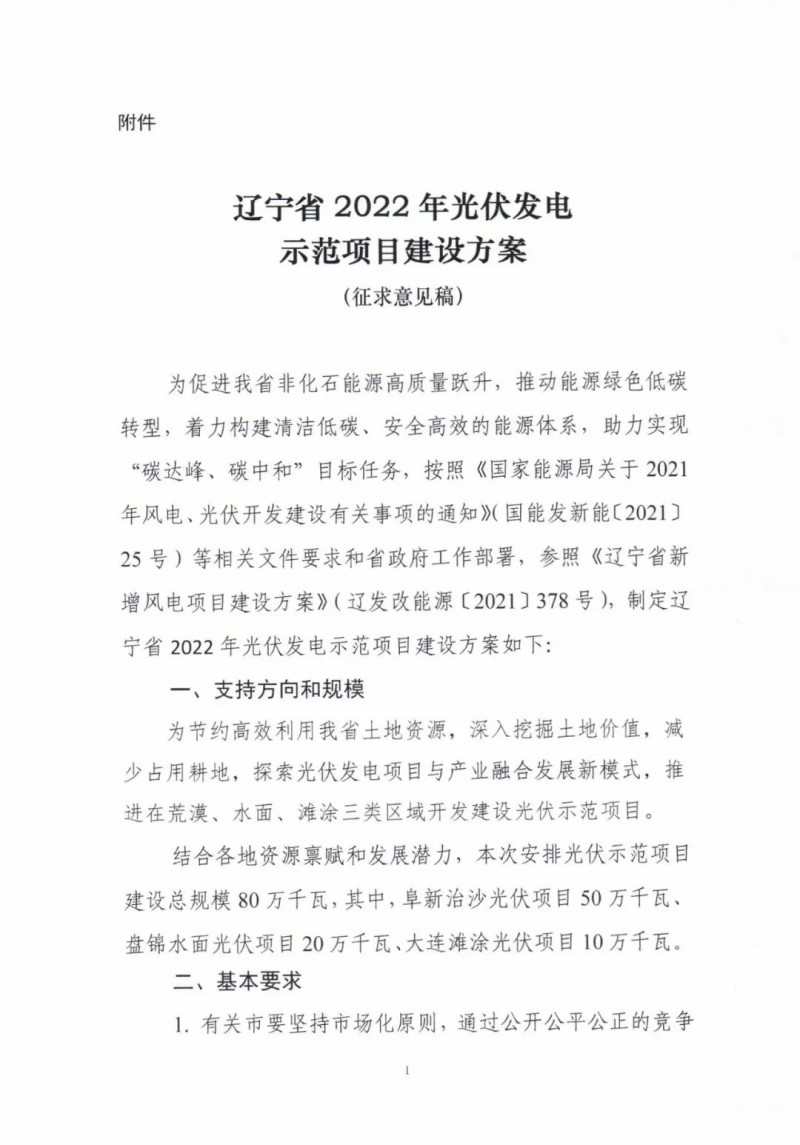 結(jié)合各地資源稟賦和發(fā)展?jié)摿Γ敬伟才殴夥痉俄?xiàng)目建設(shè)總規(guī)模80萬(wàn)千瓦,其中,阜新治沙光伏項(xiàng)目50萬(wàn)千瓦、盤錦水面光伏項(xiàng)目20萬(wàn)千瓦、大連灘涂光伏項(xiàng)目10萬(wàn)千瓦。