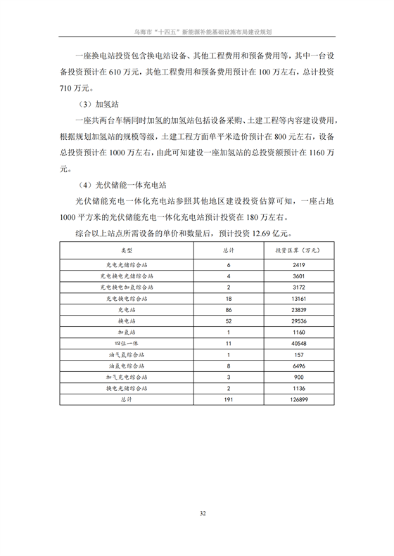 日前,內(nèi)蒙古自治區(qū)烏海市能源局印發(fā)《烏海市“十四五”新能源補(bǔ)能基礎(chǔ)設(shè)施布局建設(shè)規(guī)劃》,《規(guī)劃》提出發(fā)展目標(biāo):建設(shè)補(bǔ)能基礎(chǔ)設(shè)施共計(jì)194座,包含11座四位一體綜合站,加油加氫充電綜合站8座,加油加氣加氫綜合站1座,充電換電綜合站18座,充電換電加氫綜合站2座,充電換電光伏儲(chǔ)能綜合站4座,充電光伏儲(chǔ)能綜合站6座,換電光儲(chǔ)綜合站2座,加氣充電綜合站3座,充電站86座,換電站52座,加氫站1座。