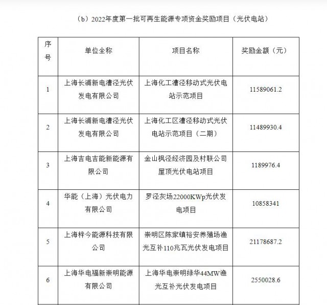 為促進本市可再生能源發(fā)展,推進節(jié)能減排和能源低碳轉(zhuǎn)型,根據(jù)《上海市可再生能源和新能源發(fā)展專項資金扶持辦法》(滬發(fā)改能源〔2016〕136號)、《上海市可再生能源和新能源發(fā)展專項資金扶持辦法(2020版)》(滬發(fā)改規(guī)范〔2020〕7號),市發(fā)展改革委組織開展了2022年度第一批可再生能源專項資金扶持項目撥付資金的核實確認工作。