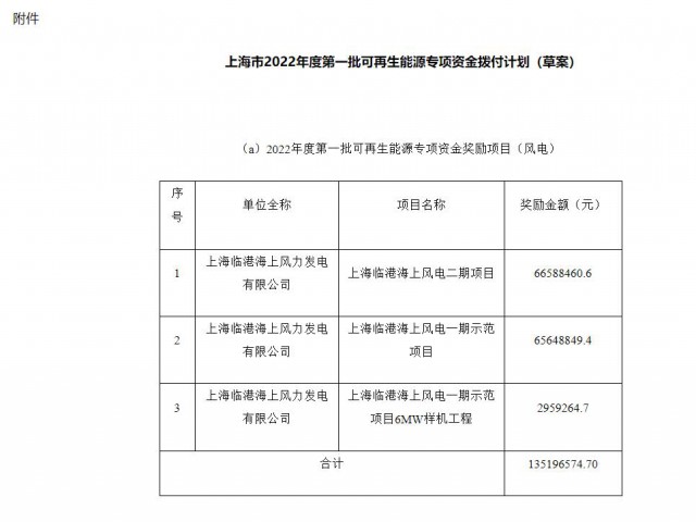 附件:上海市2022年度第一批可再生能源專項資金撥付計劃(草案)