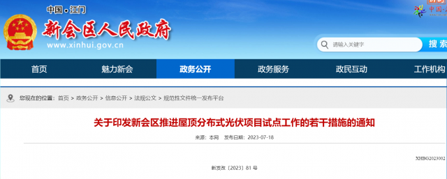 為貫徹落實黨中央、國務院關于碳達峰碳中和決策部署, 積極推進新會區(qū)屋頂分布式光伏開發(fā)試點工作,現將《新會區(qū)推進屋頂分布式光伏項目試點工作的若干措施》印發(fā)給你們,請認真貫徹落實。