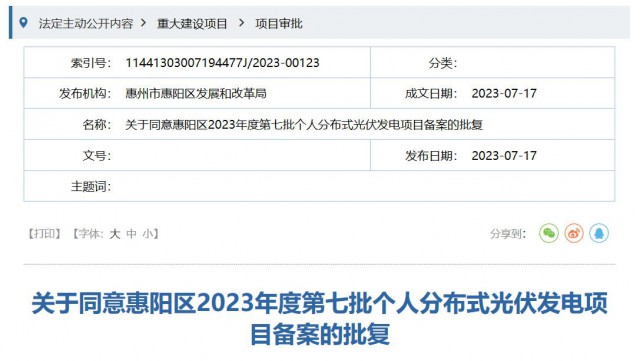 關于同意惠陽區(qū)2023年度第七批個人分布式光伏發(fā)電項目備案的批復