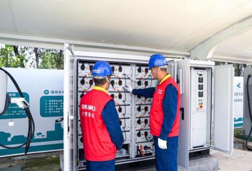 9月5日,國網(wǎng)四平供電公司員工在調(diào)試檢查光儲微電網(wǎng)儲能箱和配套設(shè)施。劉宏宇攝