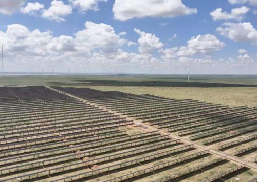 阿旗京能20萬千瓦光伏項(xiàng)目,總裝機(jī)容量200MW(配置30MW/60MWh儲(chǔ)能設(shè)施),按照牧光互補(bǔ)的模式進(jìn)行建設(shè),采用固定式高支架方案,安裝535Wp單晶硅雙面雙玻電池組件374400塊,225kW的組串式逆變器896臺(tái),35kV集電線路10回,與30萬千瓦風(fēng)電項(xiàng)目共用1座220kV升壓站,以1回220kV送出線路(長度22km)接至查干淖爾電廠500kV變電站,總投資11.5億元,屬于錫盟400萬千瓦特高壓新能源基地項(xiàng)目之一。