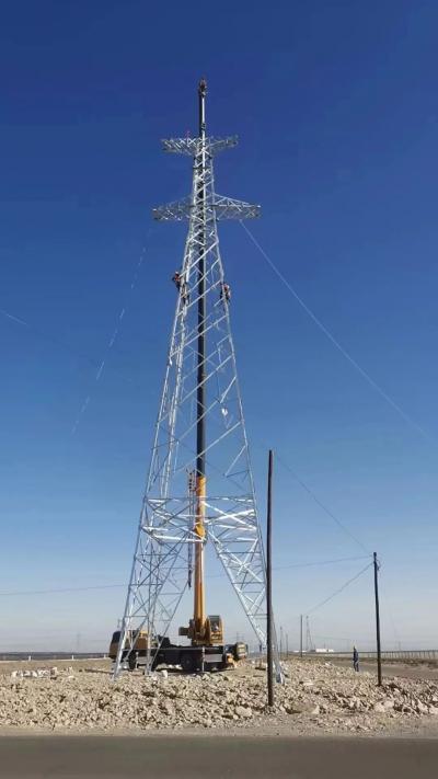 為保證施工節(jié)點(diǎn)順利推進(jìn),酒泉新能源公司對(duì)項(xiàng)目提前進(jìn)行謀劃、部署,科學(xué)制訂施工方案,有序組織圖紙會(huì)審、現(xiàn)場(chǎng)勘查、專題討論、方案研討等各項(xiàng)準(zhǔn)備工作,鐵塔組立前做好施工人員的安全技術(shù)交底工作,使每個(gè)施工人員都能掌握工藝流程及操作要點(diǎn),在確認(rèn)現(xiàn)場(chǎng)施工相關(guān)資料、安全措施落實(shí)情況及施工工器具符合要求后,方可允許進(jìn)行組立工作,整個(gè)施工過程中,該項(xiàng)目各參建方全程旁站,嚴(yán)格落實(shí)安全和技術(shù)交底,克服種種不利因素,嚴(yán)把施工工藝標(biāo)準(zhǔn)、質(zhì)量要求,最終順利完成了第一座鐵塔的吊裝組立。
