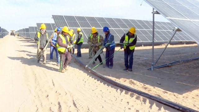 豐富的土地、光照資源以及強大的電網結構,為高臺縣發(fā)展光伏產業(yè)提供了得天獨厚的條件。走進位于高崖子灘已經建成并網的杭泰新能源有限公司20萬千瓦光伏發(fā)電項目現場,一塊塊光伏板為荒坡披上了藍色“鎧甲”,在陽光的照耀下“波光粼粼”,工人們各司其職,整個電廠運行平穩(wěn)。“我公司裝機容量是200兆瓦,配套建設40兆瓦/80兆瓦時的儲能電站一座,2024年截至目前的發(fā)電量是2.3億千瓦時,預計2024年產值是3500萬元。”高臺杭泰200MW光伏電站站長陳祎介紹道。