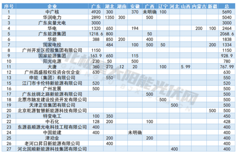 領(lǐng)跑者仍就是央企。中廣核僅在廣東一地已狂攔9個(gè)項(xiàng)目規(guī)模達(dá)4.9GW,疊加湖北、安徽、遼寧、廣西項(xiàng)目,備案總規(guī)模接近5.7GW。同為“四小豪門(mén)”的華潤(rùn)電力同樣狂飆,廣東2.89GW、湖北1.35GW、廣西500MW、湖南300MW,儲(chǔ)備規(guī)模直達(dá)5GW。此外,華電、華能、國(guó)家電投等五大電力央企的備案規(guī)模均達(dá)到GW級(jí)以上。