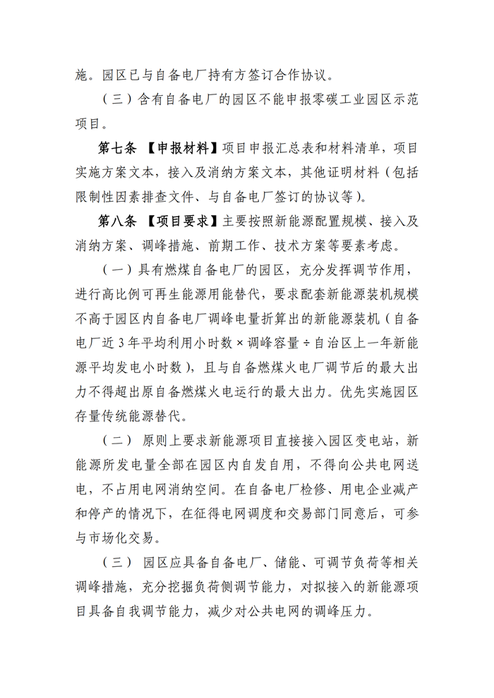鼓勵(lì)具備新增負(fù)荷的園區(qū)開展零碳工業(yè)園示范項(xiàng)目,以零碳用能為發(fā)展目標(biāo),率 先開展全清潔能源供電,提升園區(qū)整體能效。園區(qū)新增負(fù)荷供電原則上 100%由新能源電量構(gòu)成,對于配套新能源所發(fā)電量不能滿足園區(qū)供電時(shí),所購買電量需為可再生能源綠電, 園區(qū)應(yīng)通過配置儲(chǔ)能等措施,保證與園區(qū)負(fù)荷的匹配響應(yīng)和高比例自平衡。