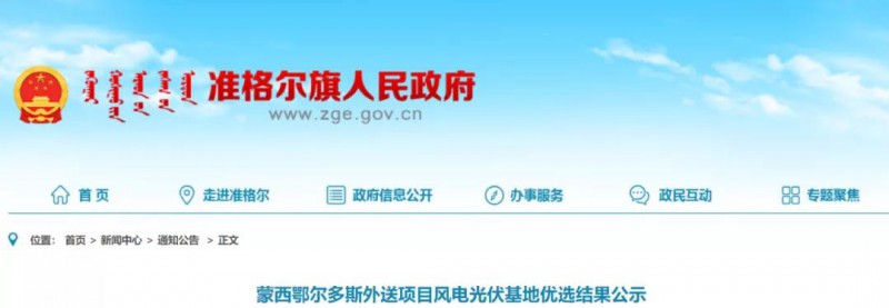 9月30日,準(zhǔn)格爾旗人民政府公示了項(xiàng)目的競(jìng)爭(zhēng)性配置結(jié)果。詳見(jiàn)原文: